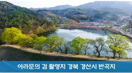 아라문의 검 촬영지 중 한 곳인 경산 반곡지는 경북의 사진 명소로 알려진 곳으로 과거 농업용 저수지로 개발된 곳이라고 합니다.