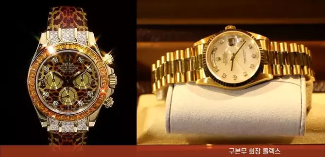 조금 이상한 부분은 알려지기로는 해당 롤렉스 모델은 위와 같이 왼쪽 사진 레오파드 데이토나 모델이었으나 이후 언론에 배포된 자료에는 '데이데이트' 모델로 바뀌어서 시계 마니아들은 이유가 뭔지 궁금해 하고 있습니다.
