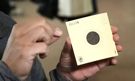 - 표적지 과녁 크기는 1점원(가장 바깥쪽 원)의 지름이 45.5밀리미터, 10점원(가장 안쪽의 원)의 지름이 0.5밀리미터이며 인쇄시의 오차를 감안하여 0.01밀리미터 오차가 허용됩니다.